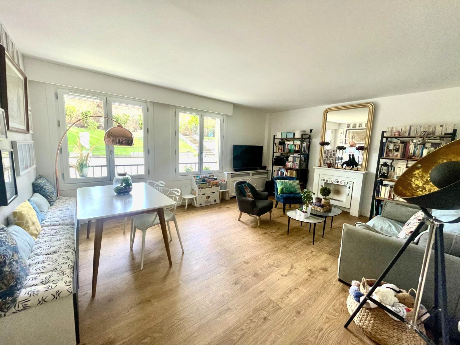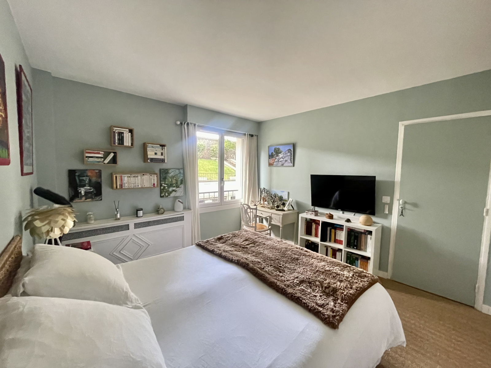 Dès l'entrée vous serez séduits par un espace bureau fonctionnel, puis par le le séjour baigné de lumière et donnant sur le jardin de la copropriété (exposition sud).Cuisine équipée avec possibilité de coin repas, deux grandes chambres de 13,30m² et 14,52m² dont une sur jardin, salle de bains avec douche et baignoire, wc séparés. Double vitrage partout, volets roulants électriques, nombreux rangements. Immeuble de bon standing en pierre de taille.